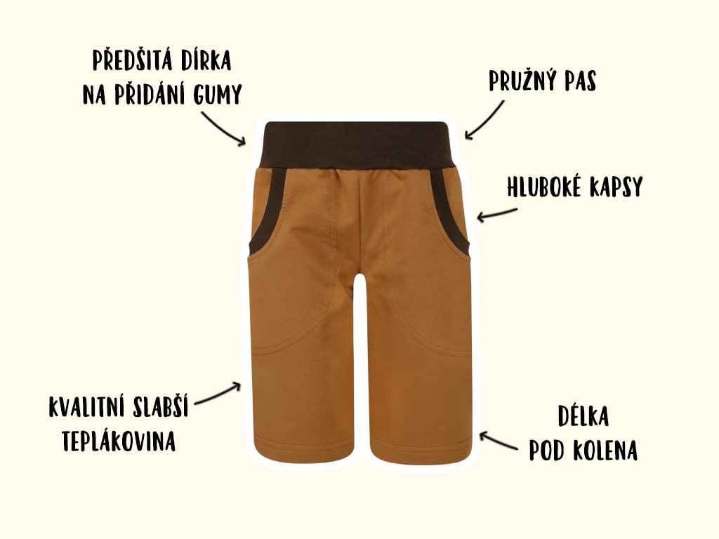 Basic hnědé bermudy (s gumou) - 2. JAKOST HNĚDÉ