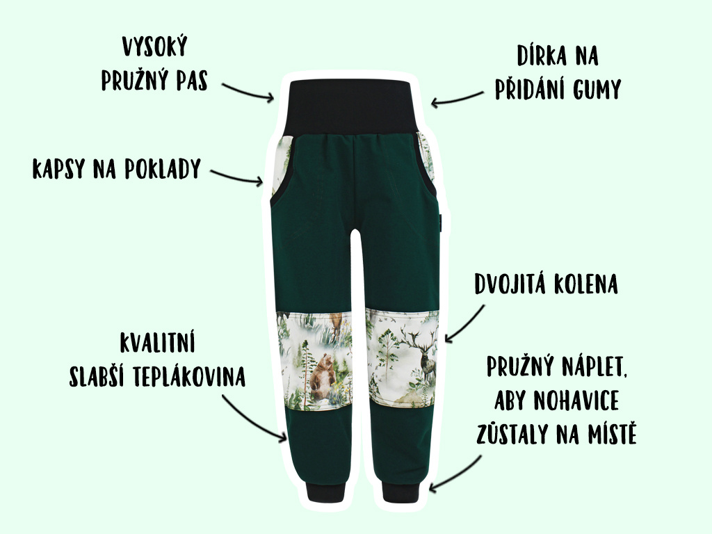 Dětské tepláky s dvojitými koleny Lesní zvířata - 2. jakost LESNÍ ZVÍŘATA