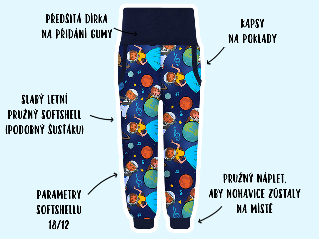 Letní pružné softshellové kalhoty Karol a Kvído - Planety - 2. JAKOST KAROL A KVÍDO