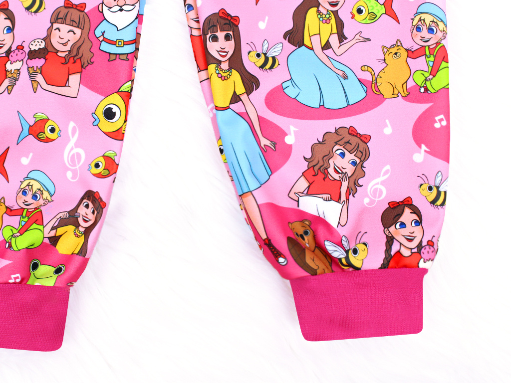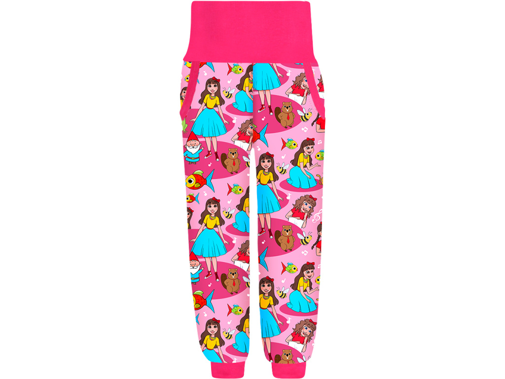 Naše švadlenky v pružném pase předšívají malou dírku na protažení gumy. Díky této vychytávce je možné zmenšit obvod pasu tak, aby sedl i těm nejhubenějším dětem. Je vhodné do kalhot provlékat širší gumy (2 cm a více), je to pro děti pohodlnější a guma se nebude v pase přetáčet. Gumu stříhejte vždy o malý kousek menší, než je obvod pasu dítěte, aby hezky držela.