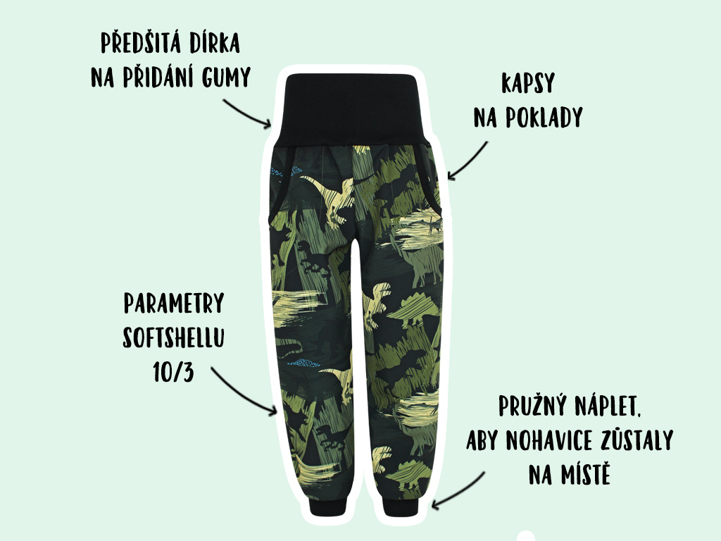 Softshellové kalhoty Dinosauři - zelení (s fleecem) - 2. jakost DINOSAUŘI