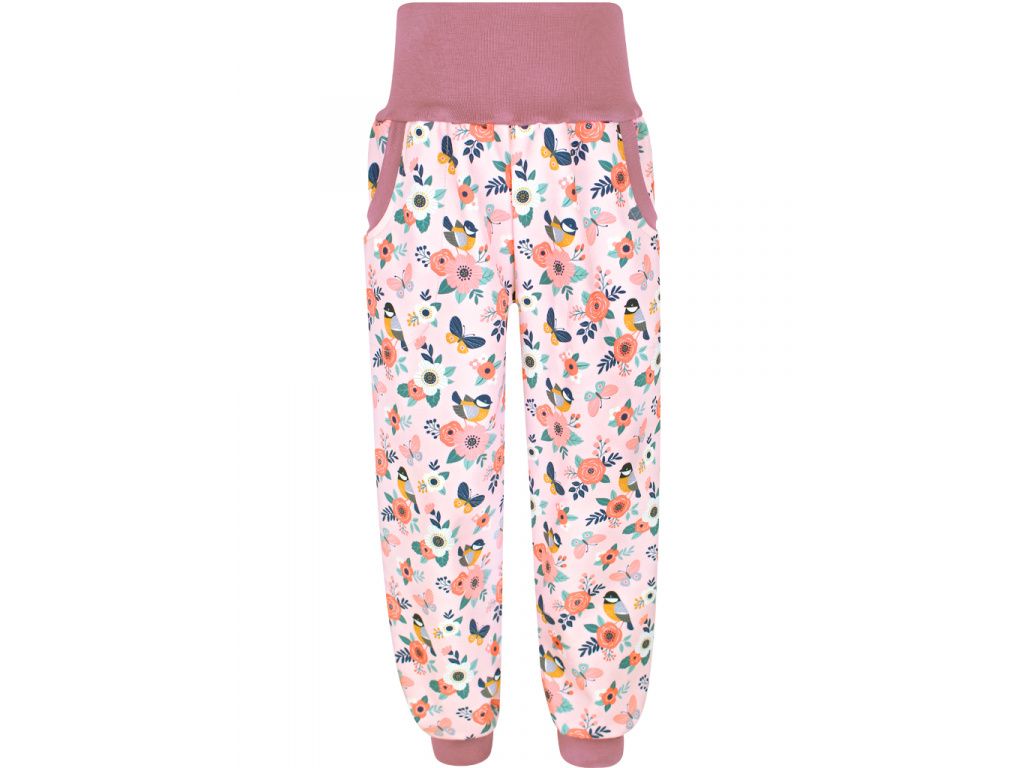 Pružné letní softshellové kalhoty Ptáčci s květy PTÁČCI