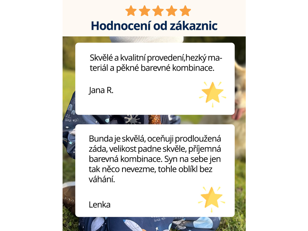 Bunda je skvělá, oceňuji prodloužená záda, velikost padne skvěle, příjemná barevná kombinace.