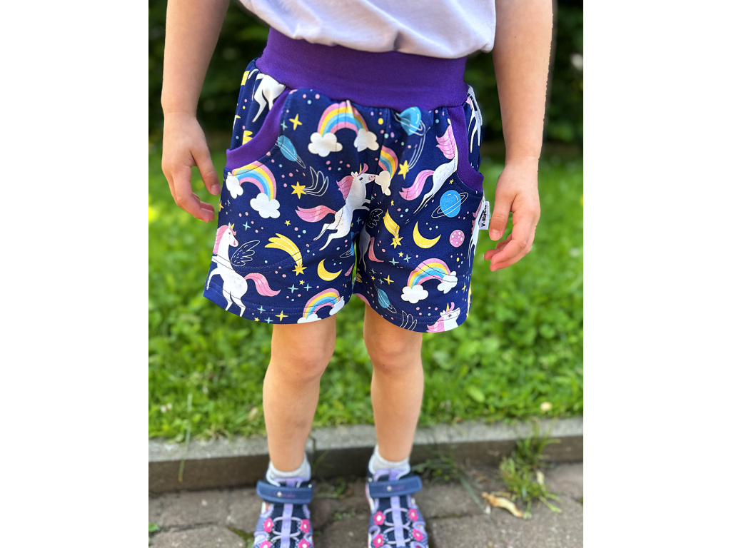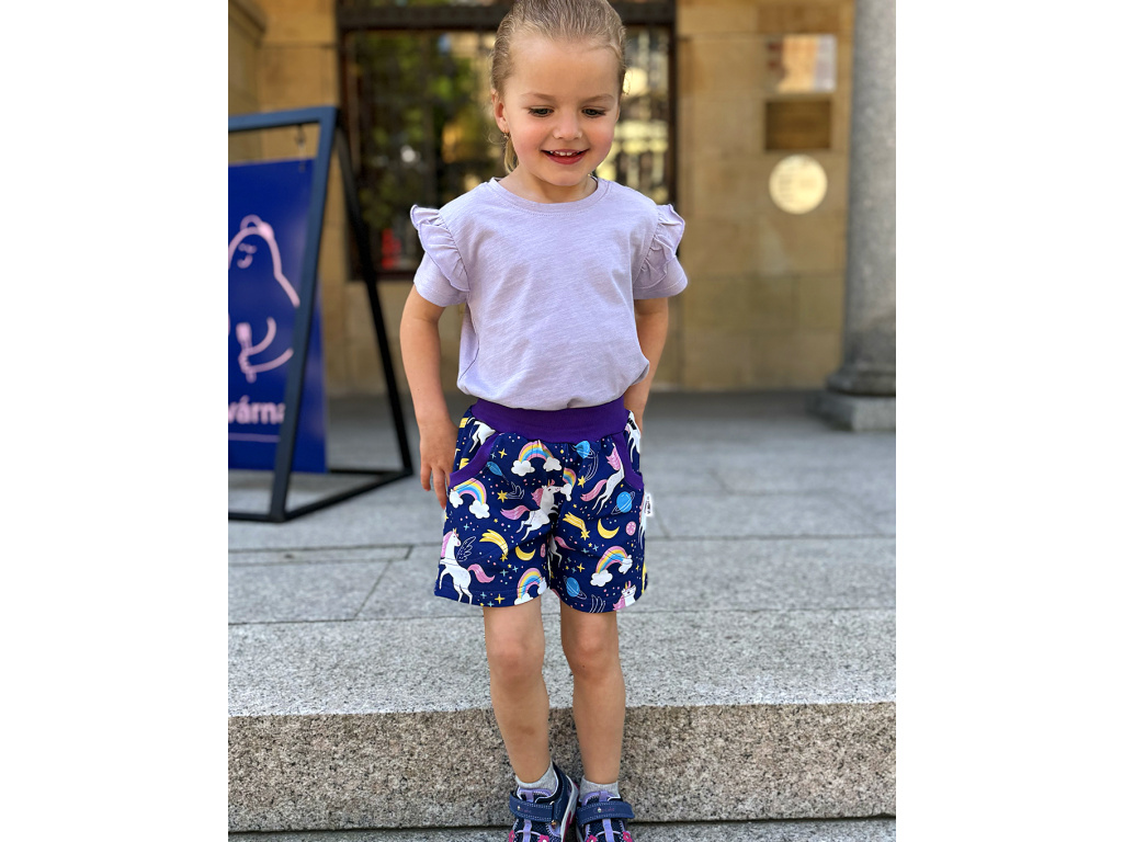 Dívčí kraťasy Jednorožci - fialové (s gumou v pase) JEDNOROŽCI