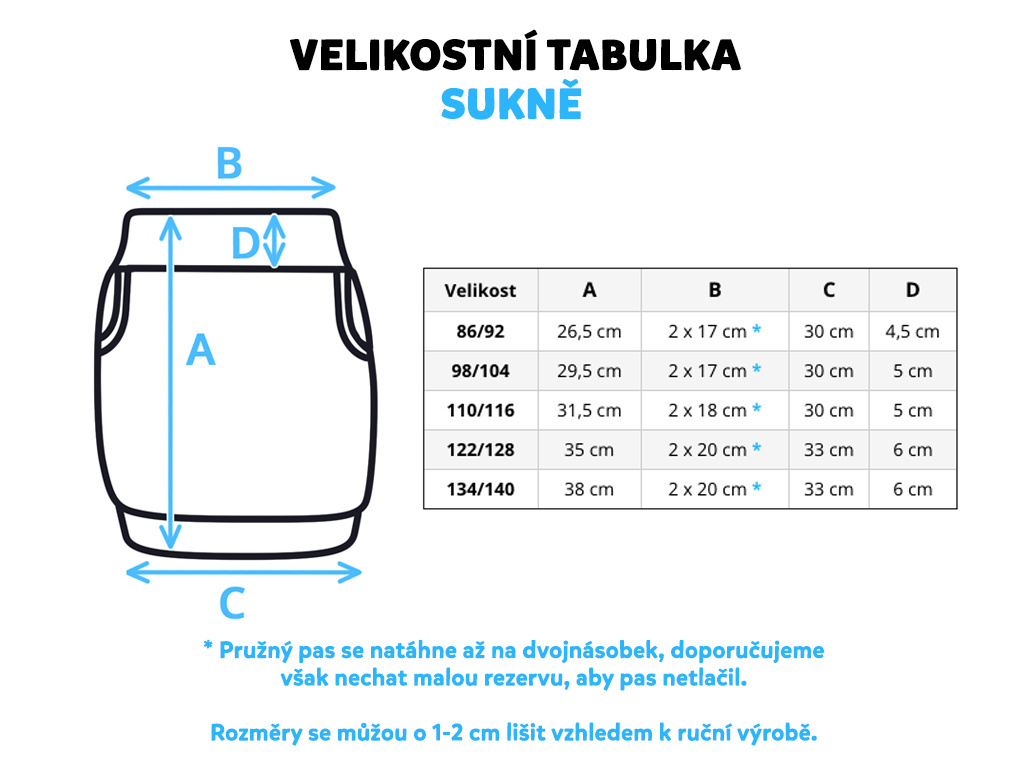 * Pružný pas se natáhne až na dvojnásobek, doporučujeme však nechat malou rezervu, aby pas netlačil.