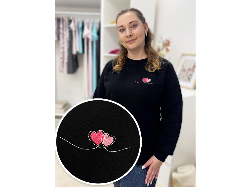 TWINSY Dámská mikina Srdíčka na černé SRDÍČKA