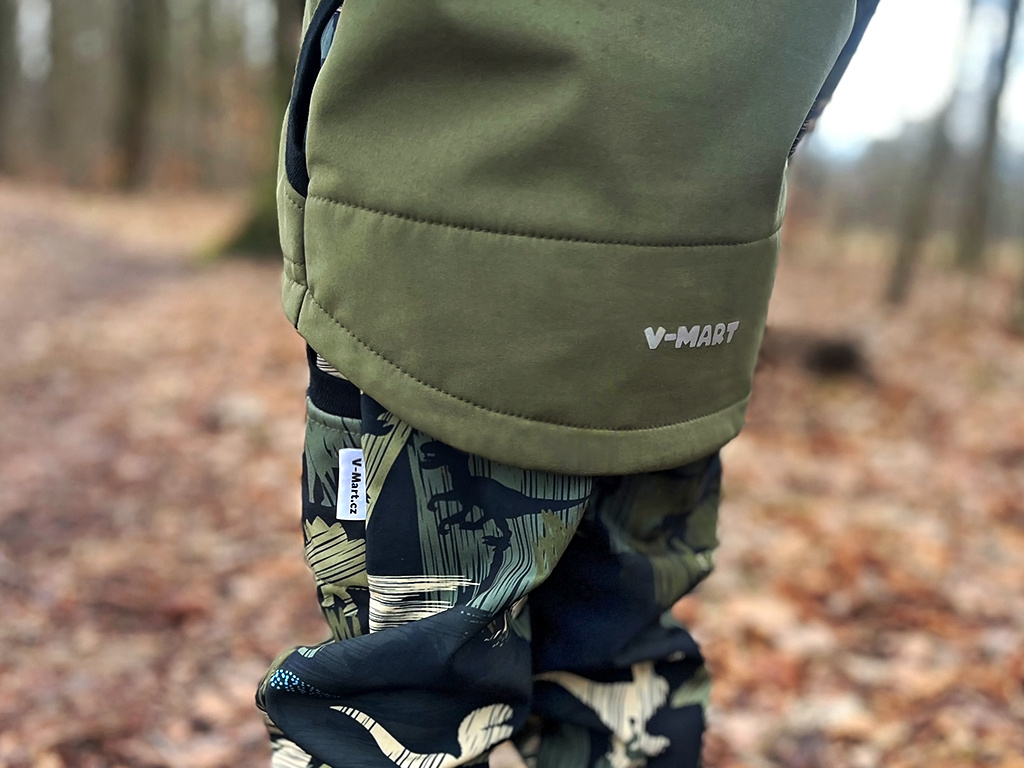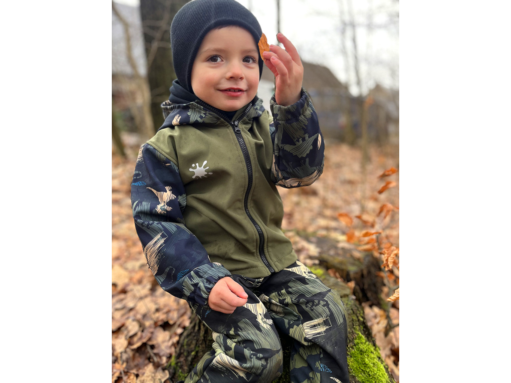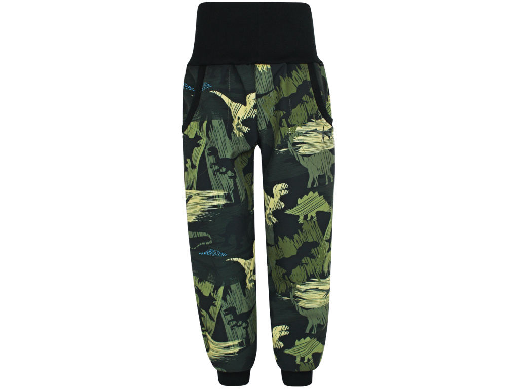 SLIM Softshellové kalhoty Dinosauři - zelení (s fleecem) DINOSAUŘI