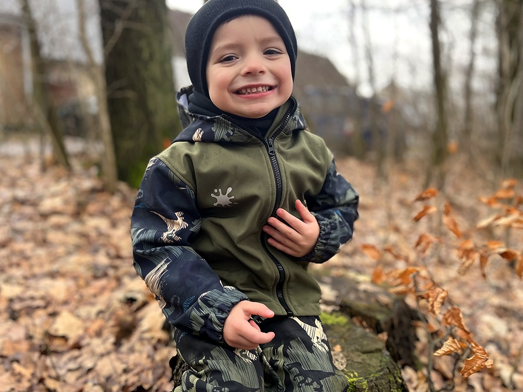 Materiál, který je ideální k venkovnímu dobrodružství. Nepromokne, neprofoukne, a proto je mezi maminkami a jejich dětmi tolik oblíbený. Skládá se ze tří vrstev - vrchní vrstvy, prodyšné membrány a fleecu. Vodní sloupec softshellu je 10 000 mm, prodyšnost 3 000 g/m2/24 hod. Tyto parametry jsou ideální na běžné volnočasové aktivity, jako je výlet do přírody, odpolední procházka nebo hraní na hřišti.