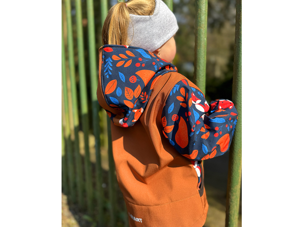 Materiál, který je ideální k venkovnímu dobrodružství. Nepromokne, neprofoukne, a proto je mezi maminkami a jejich dětmi tolik oblíbený. Skládá se ze tří vrstev - vrchní vrstvy, prodyšné membrány a fleecu. Vodní sloupec softshellu je 10 000 mm, prodyšnost 3 000 g/m2/24 hod. Tyto parametry jsou ideální na běžné volnočasové aktivity, jako je výlet do přírody, odpolední procházka nebo hraní na hřišti.