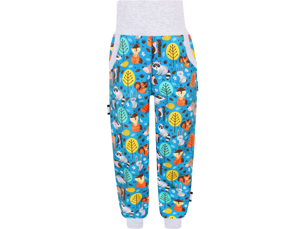 SLIM softshellové kalhoty Zvířátka na petrolejové (s fleecem) ZVÍŘÁTKA