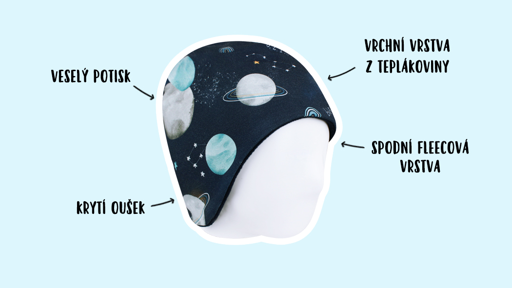 Materiál: 100% polyester (fleecová vrstva), 95% bavlna, 5% elastan (teplákovina)